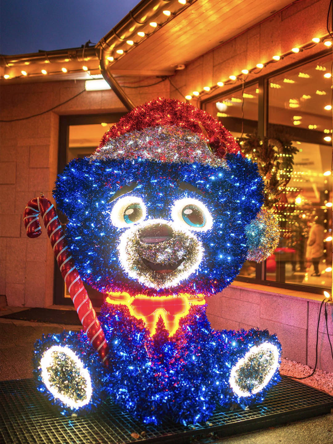 Blue Mountain Resort Szklarska Poręba to wyjątkowy obiekt stworzony z myślą o rodzinnym wypoczynku w sercu gór. Indywidualne podejście do wystroju sprawia, że dekoracje świąteczne hoteli tego typu wymagają szczególnej uwagi. Zespół Multidekor przygotował dla resortu niepowtarzalną iluminację z charakterem – świetlną maskotkę w formie sympatycznego niebieskiego misia, będącego symbolem Blue Mountain Resort. Dzięki niej każdy z gości mógł zatrzymać na zdjęciu wspomnienie pełne ciepła i zimowej magii.