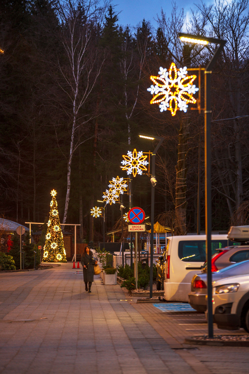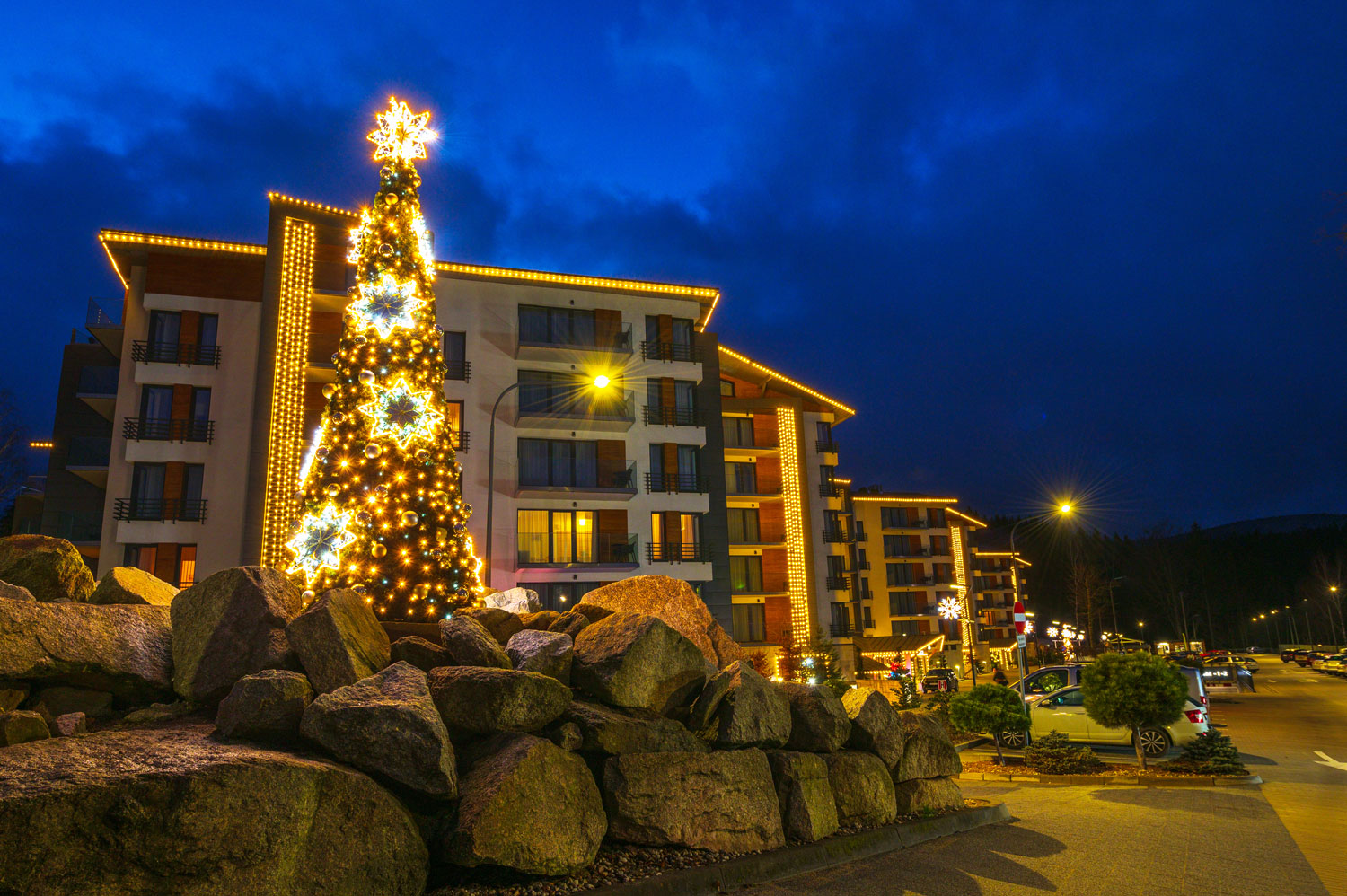Boże Narodzenie w górach to także blask choinki i subtelne światło. Dlatego teren wokół Blue Mountain Resort Szklarska Poręba ozdobiły świetlne instalacje ze śnieżynkami, które w połączeniu z górskim krajobrazem stworzyły wyjątkową atmosferę świątecznego relaksu. To połączenie rodzinnej przytulności i elegancji, które idealnie wpisuje się w charakter tego popularnego kurortu.