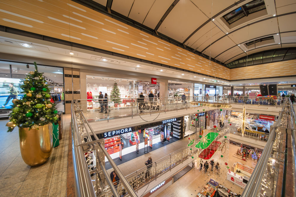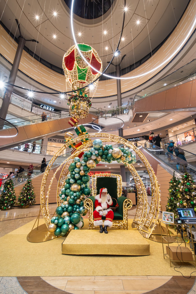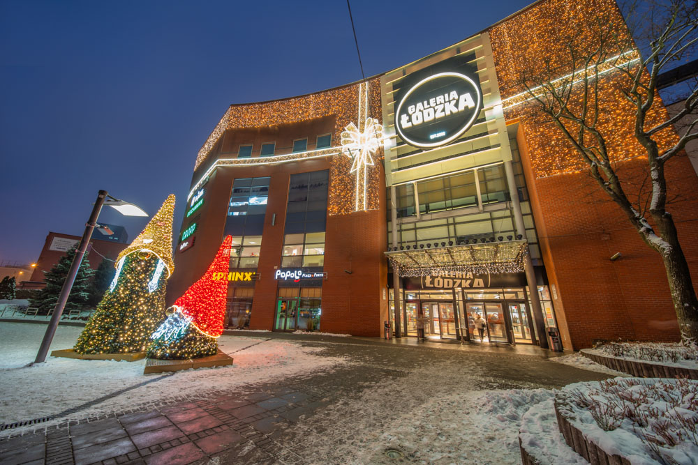 Galeria Łódzka, jeden z najważniejszych obiektów w portfolio ECE, w sezonie zimowym zyskała wyjątkowy blask dzięki świątecznym iluminacjom zaprojektowanym i wykonanym przez Multidekor. Koncepcja dekoracji została oparta na motywie świątecznej podróży, który wprowadza odwiedzających w radosny, kolorowy nastrój już od pierwszych kroków w przestrzeni centrum handlowego. Wnętrze galerii rozświetlił imponujący balon, z którego wysypują się prezenty, a obok niego pojawił się świetlny samolot, tradycyjne gwiazdy oraz dekoracyjne donice wypełnione bogato zdobionymi bombkami. Wśród tych atrakcji znajduje się również tron św. Mikołaja ukryty w dużej świetlnej bombce, stanowiący idealne miejsce na rodzinne zdjęcia i spotkania z Mikołajem.